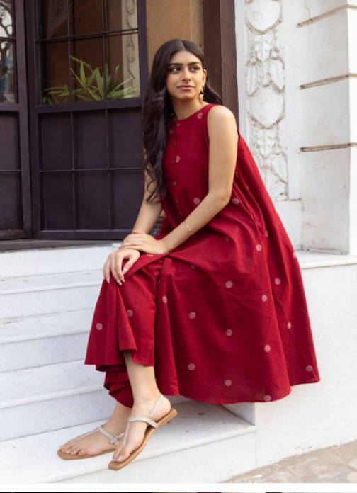 Round Neck Gotta Patti Anarkali Kurta With Trousers & Dupatta